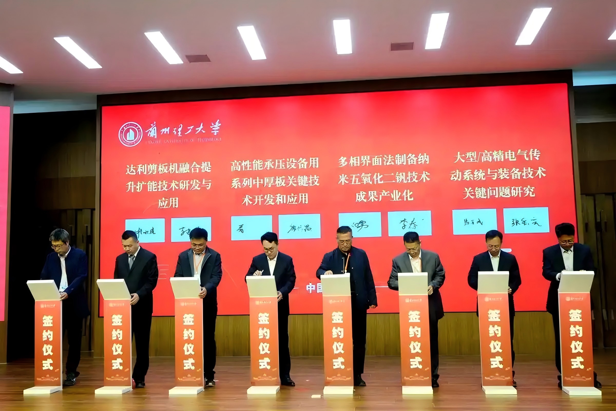 会上,绿色矿山产业研究院、新能源及新能源装备制造产业研究院、高端装备产业研究院正式揭牌;储能研究院、人工智能研究院、丝绸之路文化遗产保护研究院获授牌成立。此外,学校与平凉市政府签署《战略合作框架协议》,并与金川集团、兰石集团等企业签订13项技术研发协议,涉及智能装备、纳米材料、储能技术等前沿领域。
