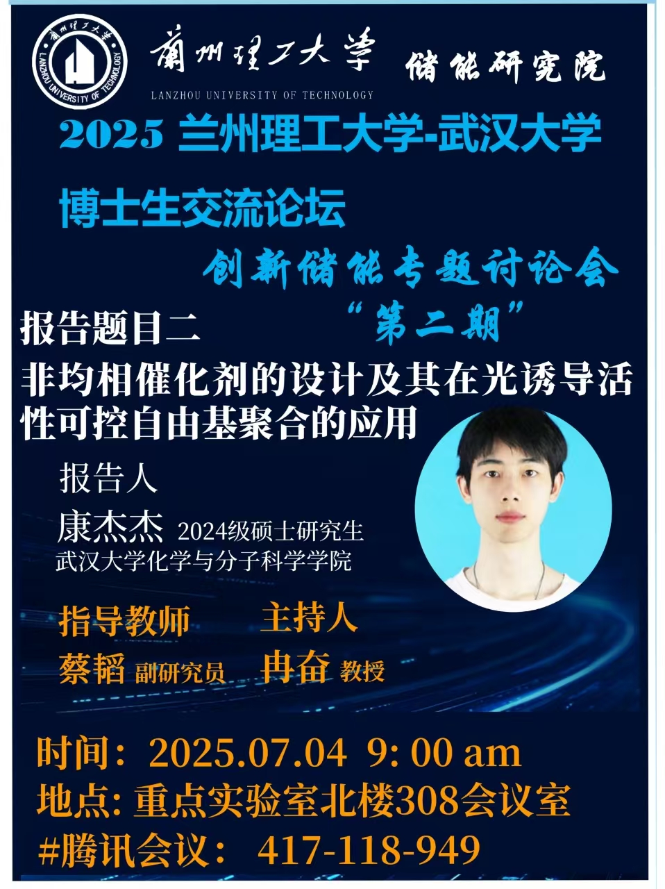 非均相催化剂的设计及其在光诱导活 性可控自由基聚合的应用(2025兰州理工大学-武汉大学博士生交流论坛创新储能专题讨论会第二期报告题目二)